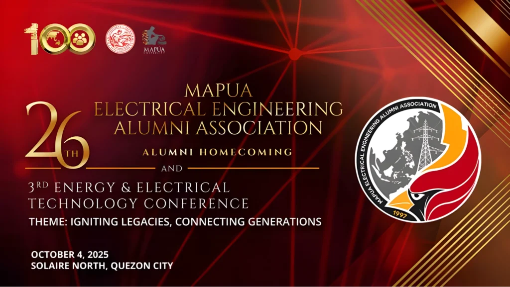 Mapua Electrical Engineering Alumni Association Home News & Events CSR Corner Features Business and Services Alumni Spotlight Hall of Legends Campus Tour Nostalgia Room Membership History About Home News & Events CSR Corner Features Business and Services Alumni Spotlight Hall of Legends Campus Tour Nostalgia Room Membership History About AND AND 3rd Energy & Electrical Technology Conference DATE & TIME: October 4, 2024 (Saturday)8:00 AM – 11:00 PM LOCATION: Ballroom 3, Solaire North,Quezon City, Metro Manila Register Now! Welcome to the MEEAA 26th Homecoming & 3rd Energy and Electrical Technology Conference, a celebration of innovation in energy, power, and electrical engineering, with this year’s theme: Igniting Legacies, Connecting Generations Countdown Expired! Speakers USEC Mario C. Marasigan, CESO III Under Secretary, Department of Energy IEEE Engr. Froilan J. Savet First Vice President and Head of Networks Manila Electric Company (MERALCO) Engr. Michael F. Magpusao Vice President & Chief Operating Office, Ayala Property Management Corporation Ms. Alicia Carla G. Buencamino Head of Mobility Infrastructure, ACMobility Dr. Eduardo Canela International Expert, AI Expert USAID ONA Dr. Marloun Sejera Associate at Mapúa University Engr. Sheila Mina Vice President, ACEN Engr. Jose Reyes Jr. VP/Head NetworksTech Management, Meralco Program 3rd Energy & Electrical Technology Conference 26th MEEAA Alumni Homecoming Time Agenda Speaker 8:00 AM – 8:50 AM Registration and Sponsor Video Shows and Presentation Poster presentations, technology exhibits, investments, travel and tours, etc. 8:50 AM – 9:00 AM Inspirational Message (Building our Future thru Innovation & Excellence Across All Engineering Disciplines) Engr. Eugene Araullo MEEAA President 9:00 AM – 9:45 AM Power and Energy Security Updates and DOE Thrust (Energy Efficiency, Renewables and EV Updates and Roadmap) Engr. Mario Marasigan Under Secretary, Department of Energy 10:00 AM – 10:30 AM Viability of SMR and MMR technology in the Philippines to support Energy Security Engr. Froi Savet 1st Vice President and Head of Networks, MERALCO 10:30 AM – 11:00 AM Green building and modern sustainable infrastructure design Engr. Michael Magpusao COO, Ayala Properties Management Corp. 11:00 AM – 11:30 AM Accelerating EV Adoption – the future of eMobility, Charging Stations as Alternative Fuel (regulations, value proposition, economics, and business opportunities) Ms. Carla Buencamino Head, ACMobility Infrastructure 11:30 AM – 12:00 PM The GEOP Promise: Renewable Energy, Real Impact Engr. Sheila Mina Vice-President ACEN Renewable Energy Solution 12:00 PM – 1:30 PM LUNCH BREAK 1:30 PM – 2:15 PM Grid Modernization and Building Climate Resilient Infractracture Engr. Jose Reyes Jr. Vice President and Head of Networks Technology Management, MERALCO 1:30 PM – 2:15 PM Grid Modernization and Building Climate Resilient Infrastructure Engr. Jose Reyes Jr. Vice President and Head of Networks Technology Management, MERALCO 2:15 PM – 2:45 PM Sponsor Presentations-Energy and Power Solutions Mr. Yuta Takahata Kawasaki Trading Co. Ltd. 2:45 PM – 3:00 PM Short Break and Sponsor Video 3:00 PM – 3:30 PM Seizing the Opportunities with AI for our profession – What is AI and technology trends– Case use applications in the academe– Case use application in the industry– AI adoption, ethical use and lessons learned Dr. Marloun Sejera Professor, Mapua University 3:30 PM – 4:00 PM Integrating and Sustaining AI in the Workplace (building the future workplace with governance) Dr. Eduardo Q. Canela AI Expert, OD Practitioner, Publisher, & Mentor 4:00 PM – 4:30 PM Introducing the MEEAA Web Portal Collaboration (importance of continuous learning, cross-disciplinary collaboration, and alumni connection and networking) Dr. Michael C. Pacis Chairperson – Education & Special Projects Com with our website developers Time Agenda Speaker/In-Charge 5:00 PM – 6:00 PM Registration & Networking Board of Trustees 6:00 PM – 6:30 PM Processional entrance of the Board of Trustees Invocation, National Anthem & Alma Mater Song Welcome Remarks Board of Trustees Engr. Arnold B. Caguimbal 1st Vice-President/ Homecoming Chairman 6:30 PM – 7:30 PM Presentation BOT Nominees Comelec Time (Election Rules) Dinner time Election of 2026 Board of Trustees President’s Report MEEAA Comelec Chairman MEEAA Comelec Engr. Eugene Araullo 7:30 PM – 8:00 PM Recognition of 2024 & 2025 EE Board Topnotchers Recognition of Jubilarians for 2025Silver Jubilarian ( Class 2000)Ruby Jubilarian (Class 1985)Golden Jubilarian (Class 1975) Engr. Eugene Araullo / Membership Committee MEEAA Membership Committee 8:00 PM – 8:30 PM Honoring the MEEAA Awards Recipients for 2025 Inspirational Message on behalf of the Awardees MEEAA Awards Committee 8:30 PM – 9:00 PM Introduction of Guest of Honor & Speaker Audio-Visual Presentation Inspirational Message from our Guest of Honor Awarding of “ALAMAT NG MAPUA” Engr. Erwin Buling Immediate Past President and Chairman of Awards Committee Engr. Diosdado P. Banatao MEEAA Awards Committee 9:00 PM – 9:15 PM Serenade / Toast / Photo Opportunity Mer John Marquuz / BOT / Advisers / All Alumni 9:15 PM – 9:45 PM Remembering the Good Old Days – Part 1 (Singing/Jamming Sessions) Entertainment 9:45 PM – 10:00 PM Launching of the MEEAA WebPortal- AVP Dr. Michael C. Pacis Chairman of Education and Special Projects Committee 10:00 PM – 10:30 PM Remembering the Good Old Days – Part 2 (Singing/Jamming Sessions) Presentation 2026 MEEAA Board of Trustees Grand Raffle prizes draw Entertainment Comelec Committee Host Closing Remarks Engr. Eugene Araullo MEEAA President 3:00 PM – 3:30 PM Fellowship Time Agenda Speaker 8:00 AM – 8:50 AM Registration and Sponsor Video Shows and Presentation Poster presentations, technology exhibits, investments, travel and tours, etc. 8:50 AM – 9:00 AM Inspirational Message (Building our Future thru In